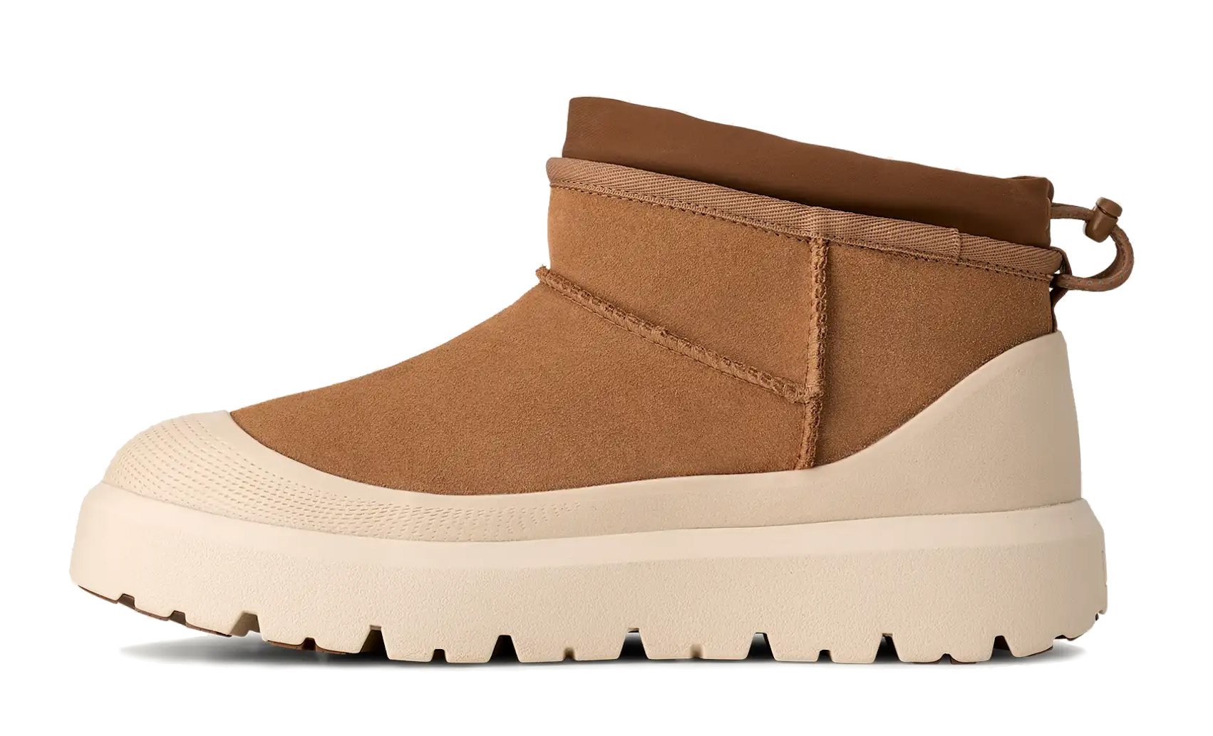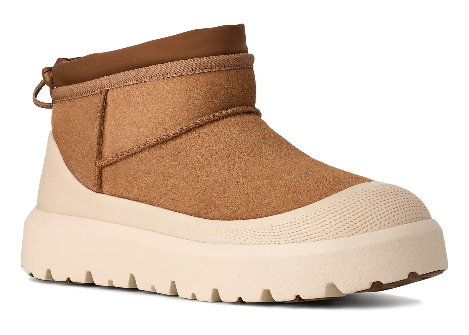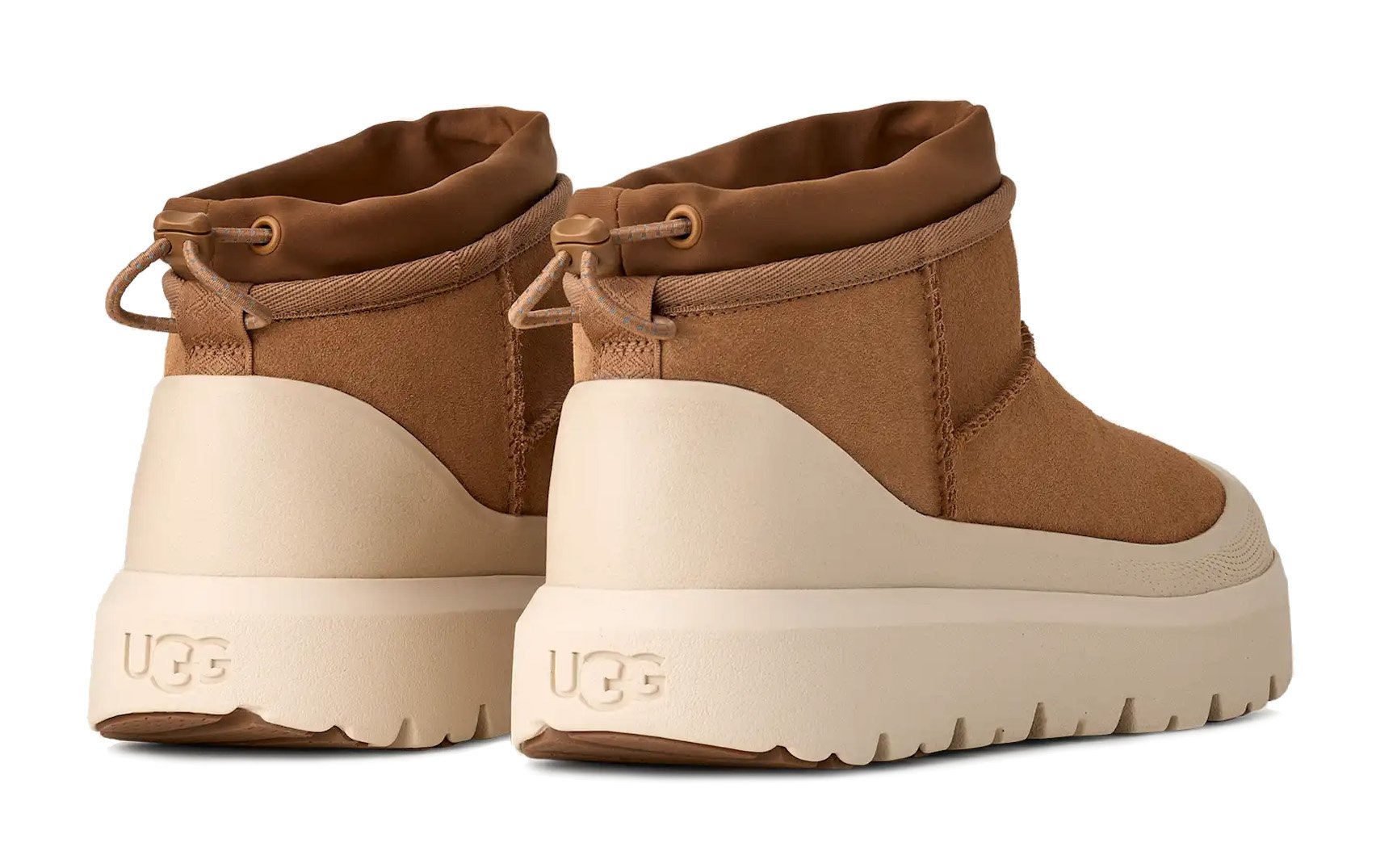 Μια νέα εκδοχή του UGG® Classic, το Classic Ultra Mini Weather Hybrid προσθέτει ακόμα μεγαλύτερη αντοχή στην φθορά με αδιάβροχο σουέτ και κατασκευή με στεγανοποίηση ραφών. Αυτή η έκδοση του Classic Ultra Mini διατηρεί το ίδιο κοντύτερο στέλεχος, αλλά ολοκληρώνεται με ένα κουμπί για να προστατεύει από το χιόνι και το χιόνι. Η ελαφριά εξωτερική σόλα από ζαχαροκάλαμο EVA αναβαθμίζεται επίσης με την προσθήκη Spider Rubber® Pods για πρόσφυση σε ολισθηρές συνθήκες. Με φινίρισμα στην επένδυση και την εσωτερική σόλα UGGplush™, θα είστε έτοιμοι να περπατήσετε σε θερμοκρασίες έως και -20ºC.