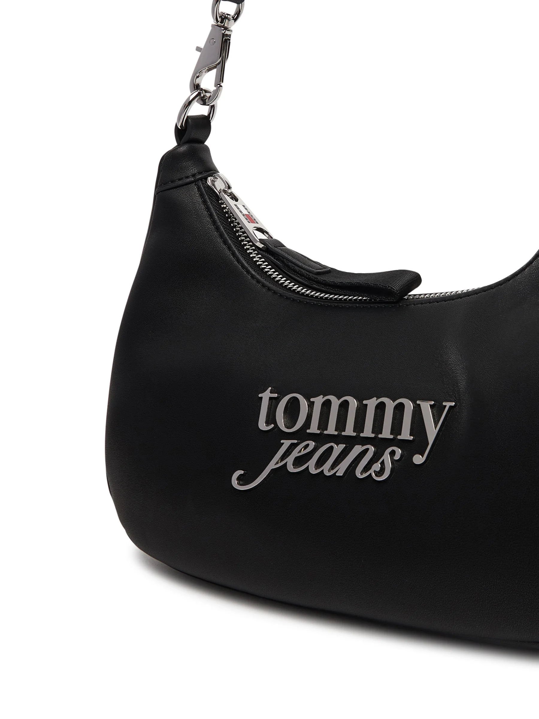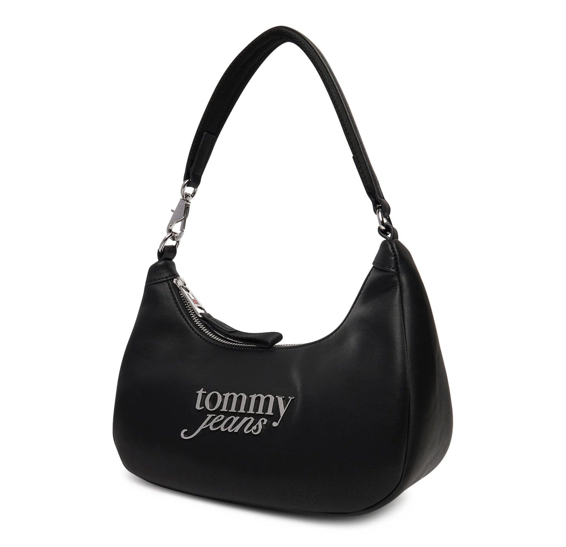 Αυτή η τσάντα ώμου έχει εκλεπτυσμένο, λείο φινίρισμα και αναδεικνύεται από ένα μεταλλικό λογότυπο Tommy Jeans στο μπροστινό μέρος.