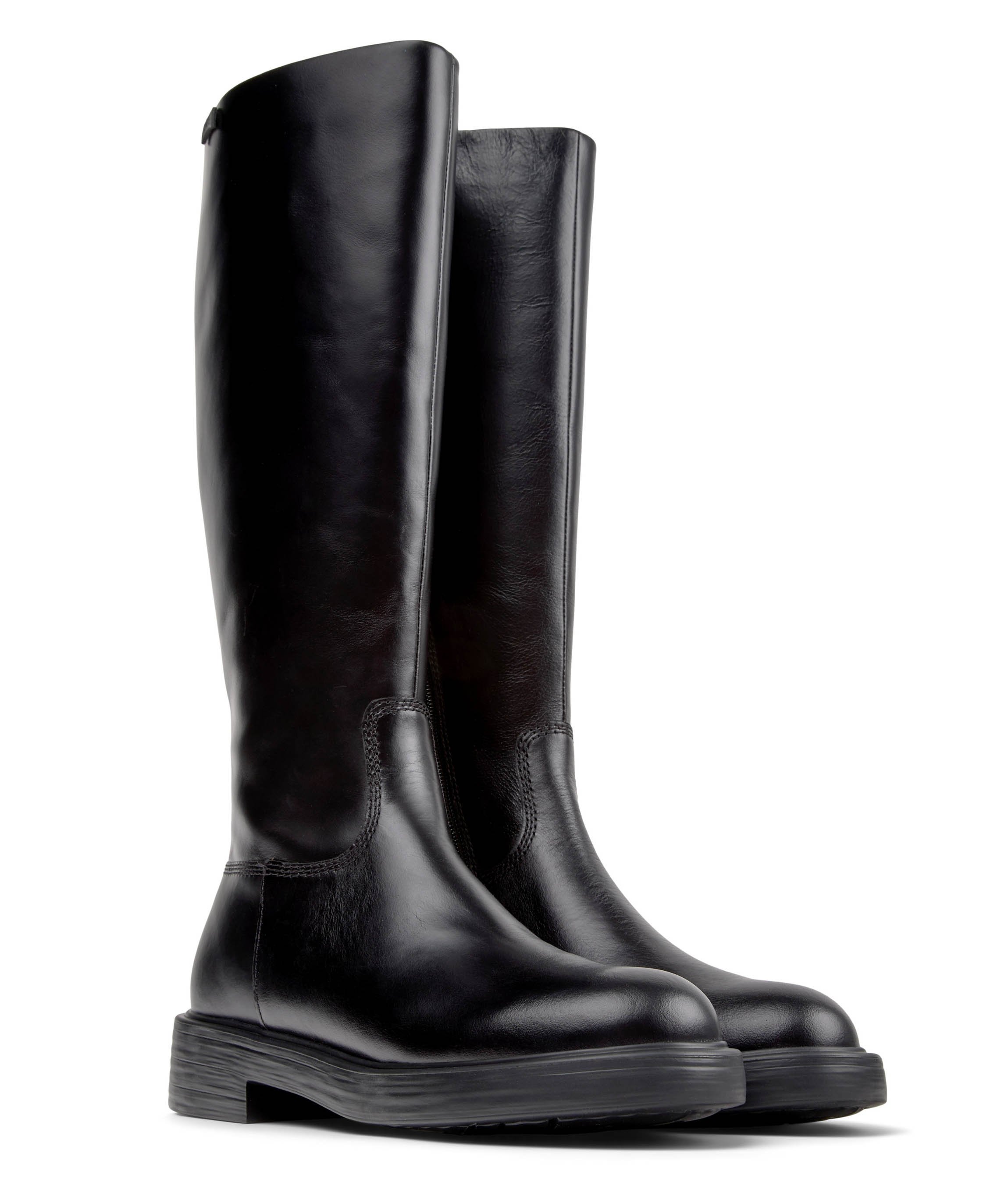Μαύρες γυναικείες μπότες Camper από δέρμα μοσχαριού με πάτους OrthoLite® Recycled™ και εξωτερικές σόλες EVA XL EXTRALIGHT®.
