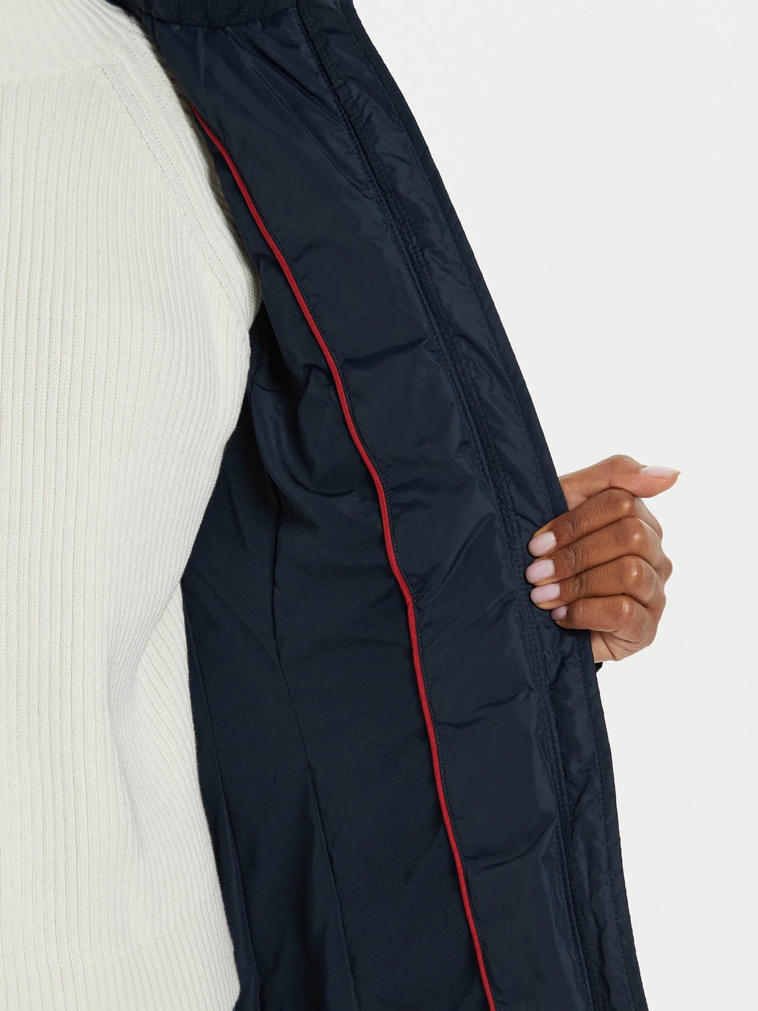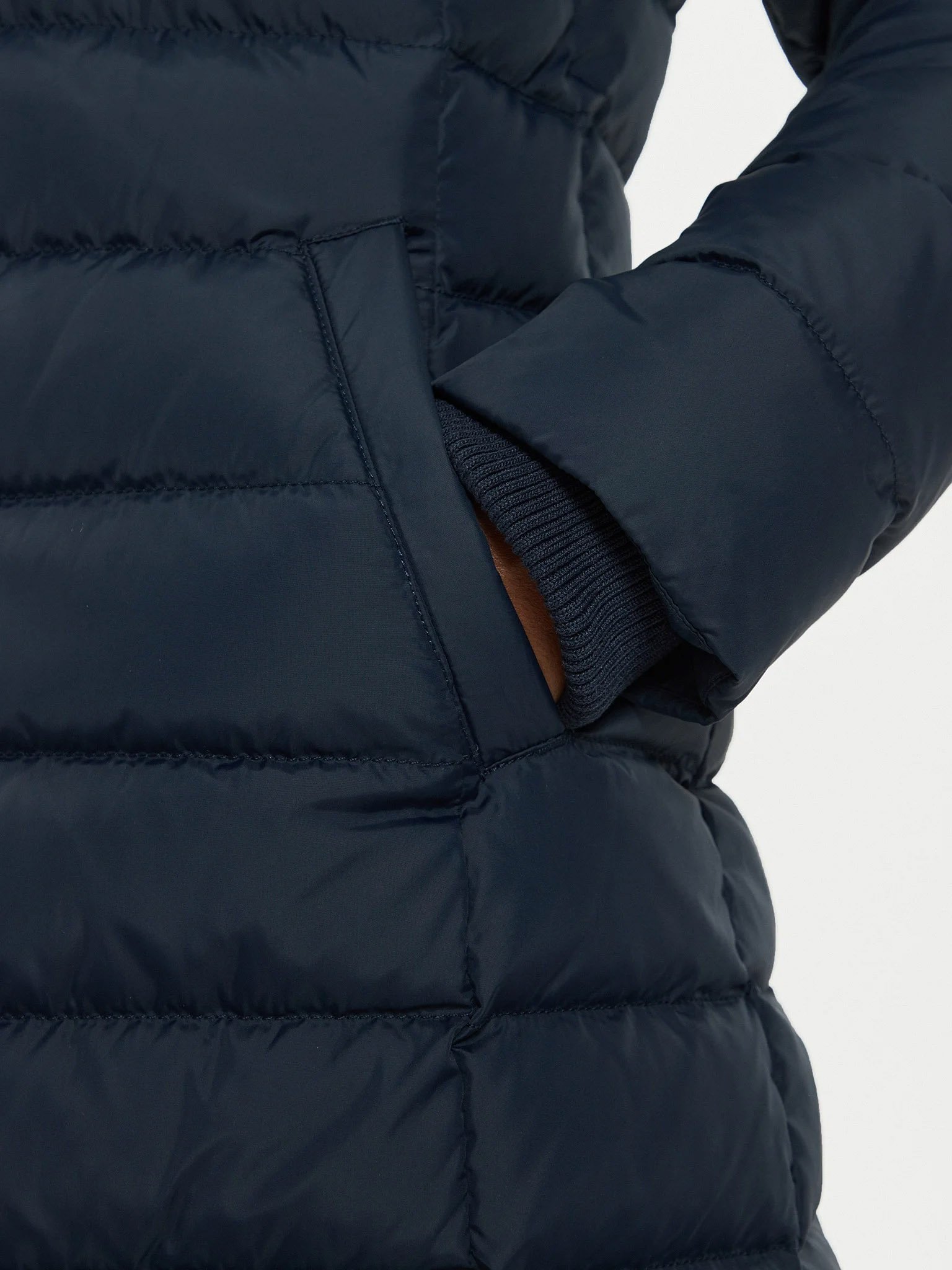 Για τις βροχερές ημέρες επιλέξτε είδη από την Αδιάβροχη συλλογή μας. Το κομψό γέμισμα με πούπουλα πάπιας καθιστά αυτό το γυναικείο μπουφάν μια άνετη χειμερινή επιλογή, ενώ η αποσπώμενη συνθετική γούνα του χαρίζει επιπλέον στιλ.